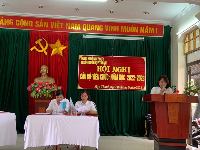 10/03/2023 A- A A+ | Hội nghị cán bộ, viên chức năm học 2022 - 2023 Xem Chia s? Hội nghị cán bộ, viên chức năm học 2022 - 2023 của trường mầm non Hợp Thanh đã thành công tốt đẹp. Tập thể cán bộ, viên chức và người lao động nhà trường quyết tâm phát huy những thành tích đã đạt được, phấn đấu thực hiện thắng lợi nhiệm vụ chính trị, tích cực đóng góp công sức và trí tuệ xây dựng Nhà trường ngày một vững mạnh./. Tập tin đính kèm Tải về