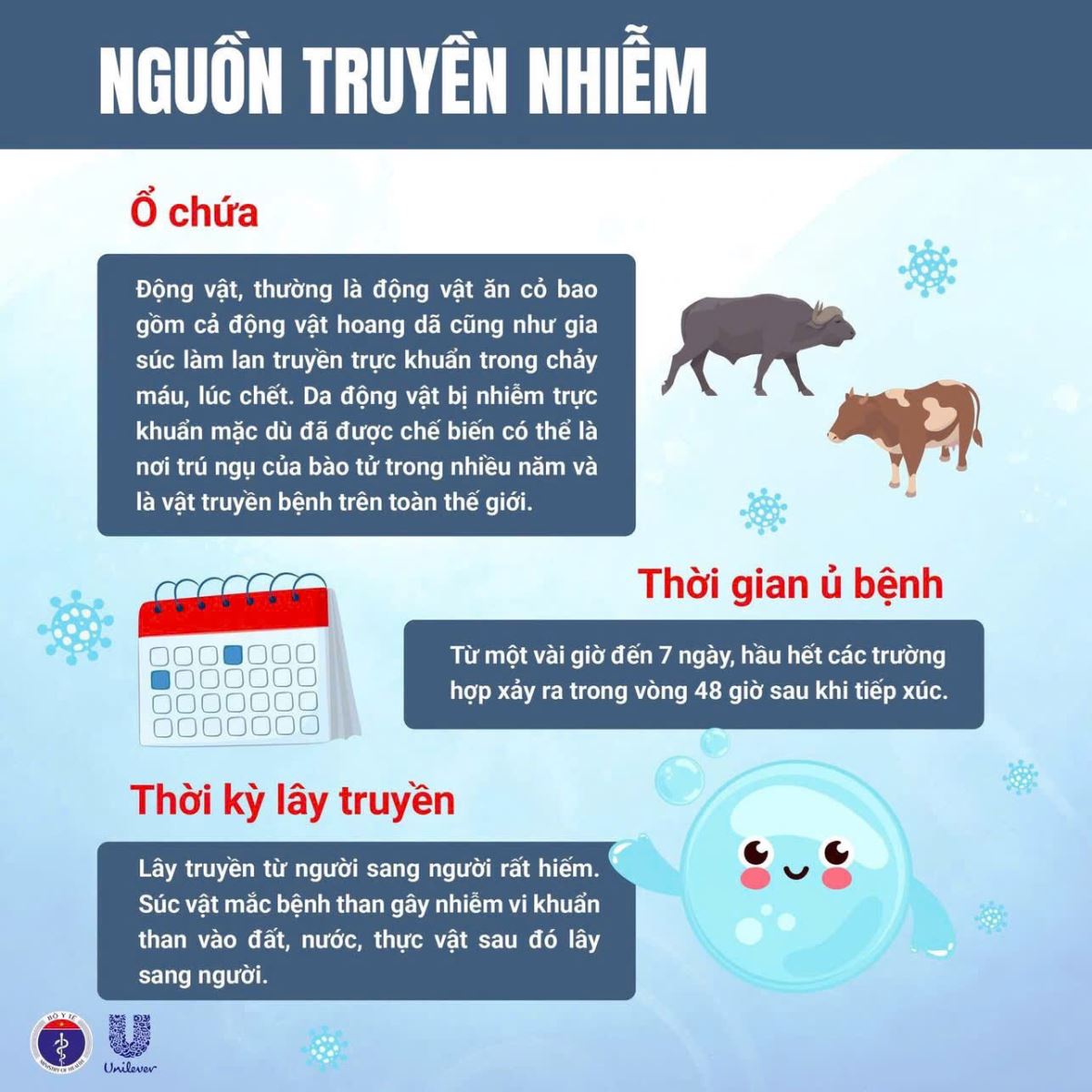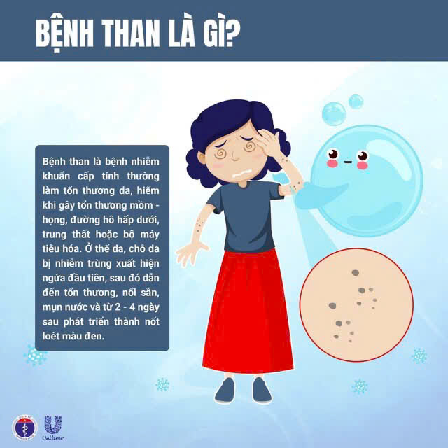 05/12/2025 A- A A+ | PHÒNG, CHỐNG BỆNH THAN NHỮNG ĐIỀU CẦN BIẾT Xem Chia s? ⚠️ PHÒNG, CHỐNG BỆNH THAN NHỮNG ĐIỀU CẦN BIẾT Bệnh than là bệnh nhiễm khuẩn cấp tính, thường gây tổn thương da. Ở thể da, vùng da nhiễm bệnh ban đầu ngứa, sau đó xuất hiện tổn thương, nổi sần, mụn nước và sau 2–4 ngày hình thành nốt loét màu đen. 🦠 NGUỒN TRUYỀN NHIỄM Ổ chứa: động vật ăn cỏ, bao gồm gia súc và động vật hoang dã. Da động vật mắc bệnh, dù đã chế biến, vẫn có thể chứa bào tử than tồn tại nhiều năm. Thời gian ủ bệnh: từ vài giờ đến 7 ngày, đa số trong 48 giờ sau tiếp xúc. Lây từ người sang người rất hiếm. Gia súc mắc bệnh có thể làm nhiễm đất, nước, thực vật và lây sang người. 🔥 PHƯƠNG THỨC LÂY TRUYỀN ✔️ Qua đường da Da bị tổn thương tiếp xúc với mô, lông, da, xương của động vật mắc bệnh; hoặc với sản phẩm chế biến từ động vật nhiễm khuẩn; hoặc nhiễm bào tử từ chất bài tiết của động vật bệnh. Có thể lây khi sử dụng phân bón làm từ xương động vật nhiễm khuẩn. ✔️ Qua đường hô hấp Hít phải nha bào vi khuẩn than, thường gặp trong ngành chế biến da, len, xương hoặc khi tiếp xúc trực tiếp với động vật mắc bệnh. ✔️ Qua đường tiêu hóa Ăn phải thực phẩm bị nhiễm trực khuẩn than. 🛡️ BIỆN PHÁP PHÒNG, CHỐNG BỆNH THAN Không tiếp xúc, giết mổ hoặc ăn thịt gia súc mắc bệnh. Trang bị bảo hộ như ủng, găng tay, quần áo dài tay khi làm việc với gia súc. Tránh tiếp xúc với gia súc khi có vết thương hoặc vùng da bị tổn thương. Rửa tay, vệ sinh cơ thể bằng xà phòng ngay sau khi tiếp xúc với gia súc. Khi có biểu hiện nghi mắc, cần đến ngay cơ sở y tế để khám và điều trị kịp thời. 👉 Chủ động phòng ngừa khi tiếp xúc với gia súc và thực phẩm là biện pháp quan trọng để hạn chế nguy cơ mắc bệnh than. Tập tin đính kèm Tải về
