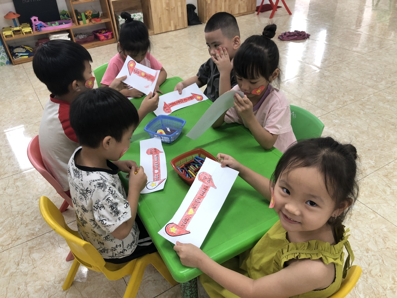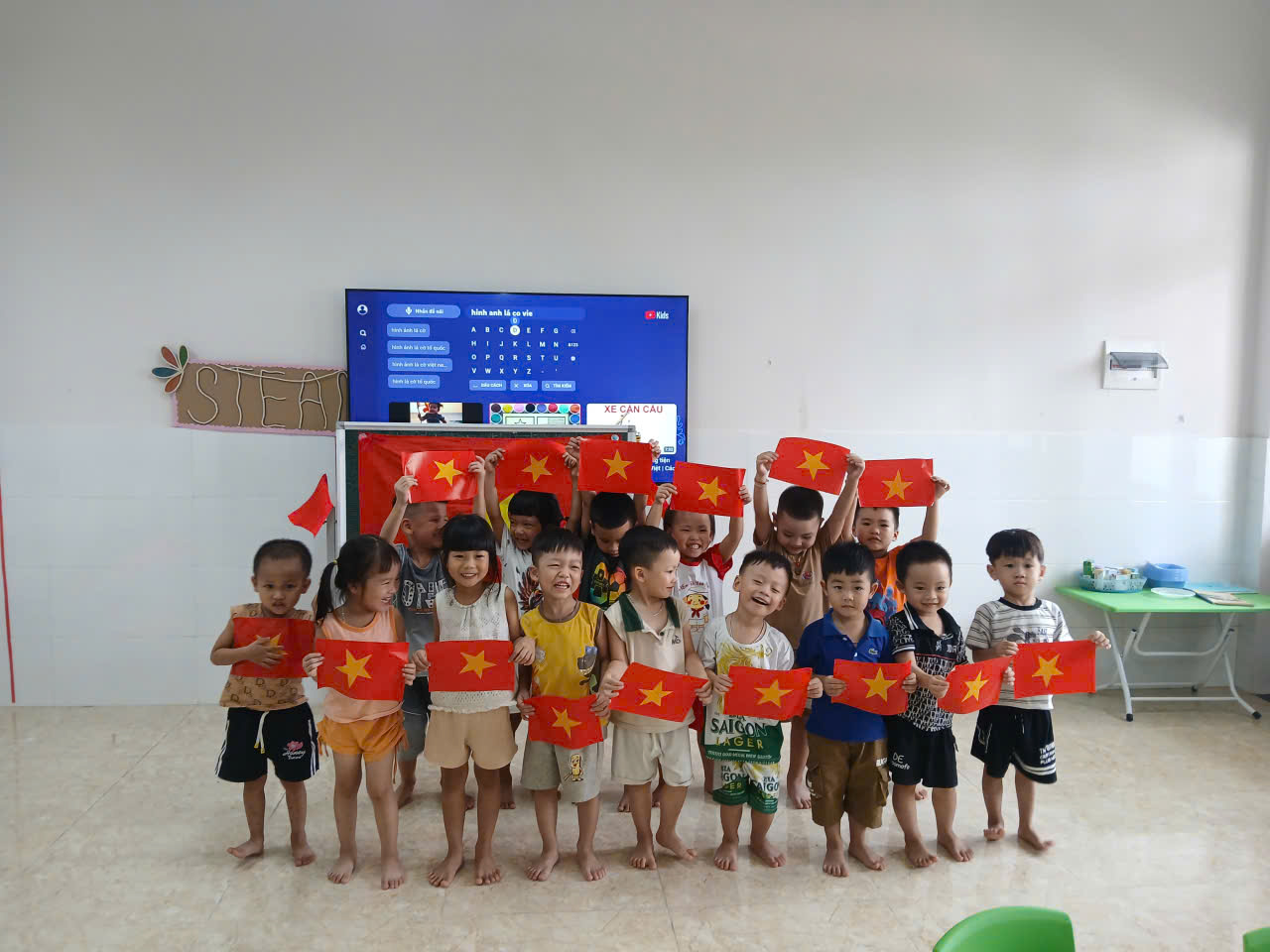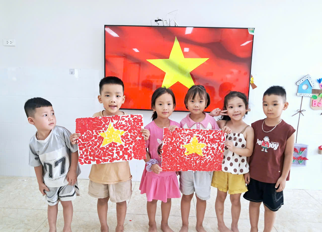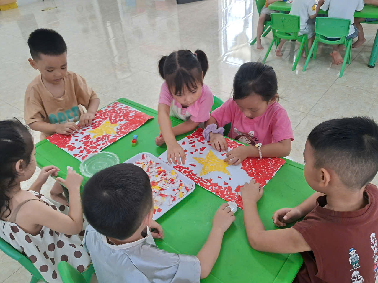 01/09/2025 A- A A+ | CÁC HOẠT ĐỘNG TRẢI NGHIỆM Ý NGHĨA VỚI SẮC CỜ TỔ QUỐC Xem Chia s? CÁC HOẠT ĐỘNG TRẢI NGHIỆM Ý NGHĨA VỚI SẮC CỜ TỔ QUỐC Trường Mầm non Hợp Thanh Hòa chung không khí tưng bừng chào mừng ngày Quốc khánh 2/9, các cô giáo trường Mầm non Hợp Thanh đã tổ chức nhiều hoạt động trải nghiệm sáng tạo cho các bé ở các độ tuổi. Thông qua những hoạt động gần gũi, trẻ không chỉ được rèn kỹ năng khéo léo mà còn bồi dưỡng tình yêu quê hương, đất nước. 1. Xé dán tạo hình lá cờ Tổ quốc – Lớp 5 tuổi Dưới sự hướng dẫn tận tình của cô giáo, các bé 5 tuổi đã hào hứng xé những mảnh giấy màu đỏ, vàng để dán thành lá cờ đỏ sao vàng. Mỗi sản phẩm đều chứa đựng sự chăm chút, khéo léo và niềm tự hào trẻ thơ. 2. Mầm non với sắc cờ đỏ thắm – Lớp 5 tuổi Các bé lớp 5 tuổi còn tham gia hoạt động sáng tạo với chủ đề “Sắc cờ đỏ thắm”. Sản phẩm của trẻ được trưng bày tại lớp học, tạo nên một không gian rực rỡ, đầy ý nghĩa. 3. Tạo hình dán lá cờ – Lớp 4 tuổi Với đôi tay nhỏ xinh, các bé 4 tuổi tập trung dán lá cờ Tổ quốc. Hoạt động giúp trẻ làm quen với kỹ năng thủ công, rèn sự kiên trì và khéo léo. 4. Tô màu lá cờ Tổ quốc – Lớp 3 tuổi Ở lứa tuổi nhỏ nhất, các bé 3 tuổi được làm quen với tô màu lá cờ đỏ sao vàng. Những nét bút ngây thơ nhưng tràn đầy sự hứng thú, góp phần khơi gợi trong các con tình cảm yêu Tổ quốc ngay từ những bước đầu tiên. Tập tin đính kèm Tải về