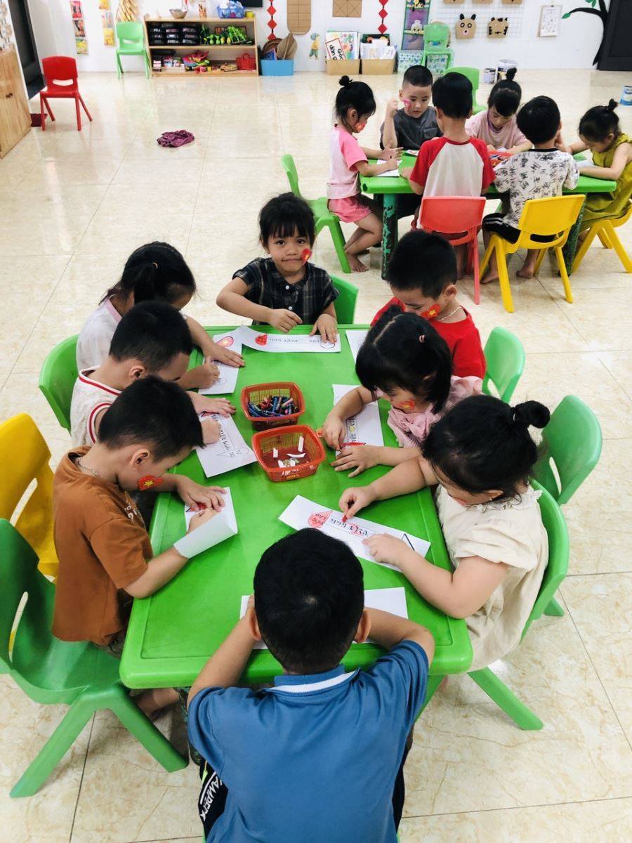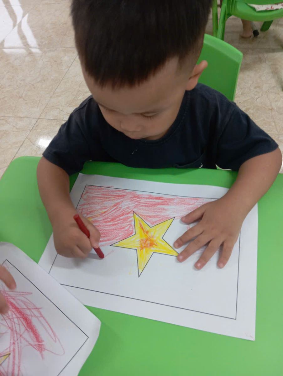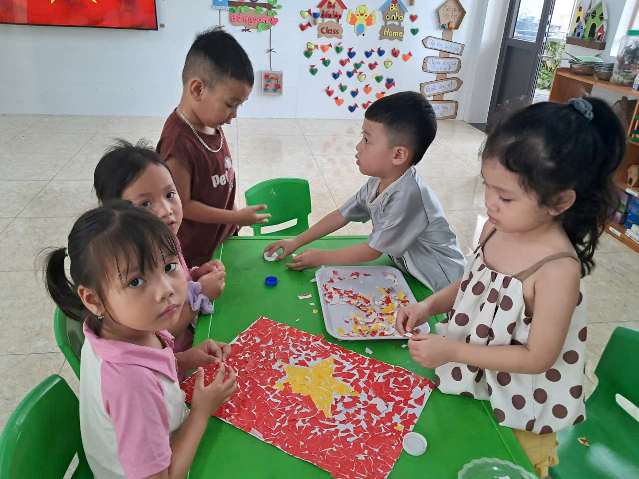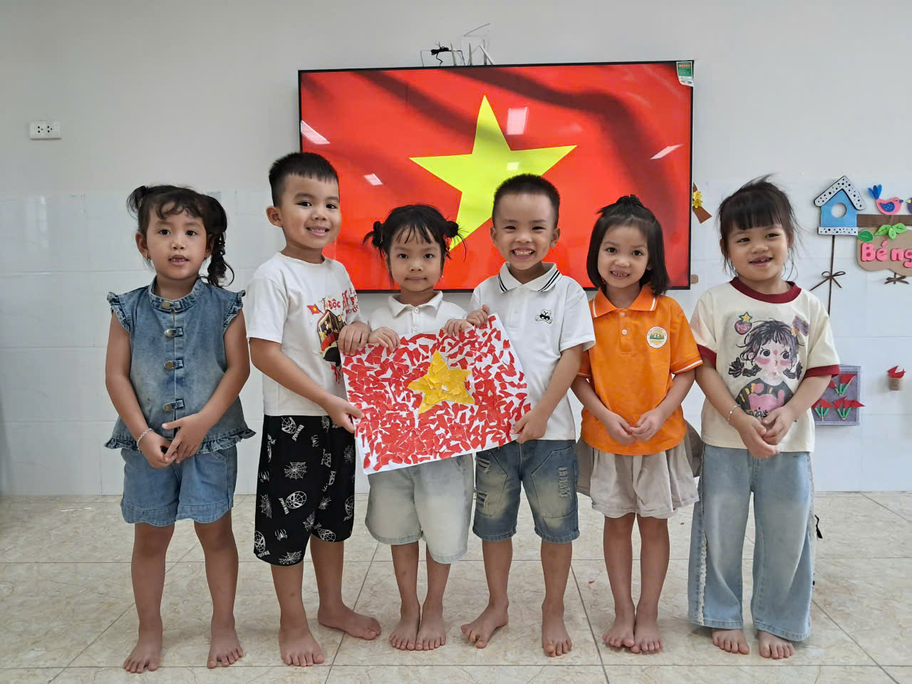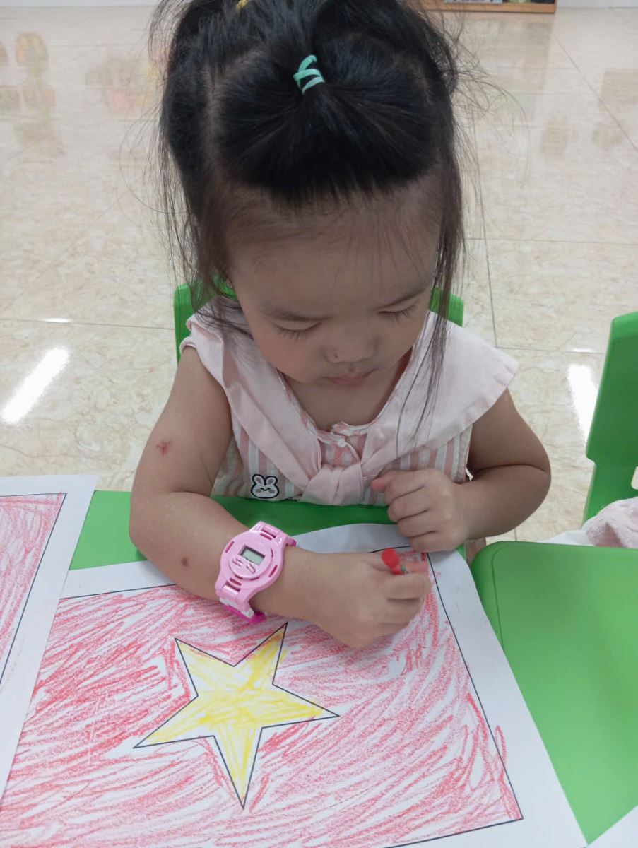 01/09/2025 A- A A+ | CÁC HOẠT ĐỘNG TRẢI NGHIỆM Ý NGHĨA VỚI SẮC CỜ TỔ QUỐC Xem Chia s? CÁC HOẠT ĐỘNG TRẢI NGHIỆM Ý NGHĨA VỚI SẮC CỜ TỔ QUỐC Trường Mầm non Hợp Thanh Hòa chung không khí tưng bừng chào mừng ngày Quốc khánh 2/9, các cô giáo trường Mầm non Hợp Thanh đã tổ chức nhiều hoạt động trải nghiệm sáng tạo cho các bé ở các độ tuổi. Thông qua những hoạt động gần gũi, trẻ không chỉ được rèn kỹ năng khéo léo mà còn bồi dưỡng tình yêu quê hương, đất nước. 1. Xé dán tạo hình lá cờ Tổ quốc – Lớp 5 tuổi Dưới sự hướng dẫn tận tình của cô giáo, các bé 5 tuổi đã hào hứng xé những mảnh giấy màu đỏ, vàng để dán thành lá cờ đỏ sao vàng. Mỗi sản phẩm đều chứa đựng sự chăm chút, khéo léo và niềm tự hào trẻ thơ. 2. Mầm non với sắc cờ đỏ thắm – Lớp 5 tuổi Các bé lớp 5 tuổi còn tham gia hoạt động sáng tạo với chủ đề “Sắc cờ đỏ thắm”. Sản phẩm của trẻ được trưng bày tại lớp học, tạo nên một không gian rực rỡ, đầy ý nghĩa. 3. Tạo hình dán lá cờ – Lớp 4 tuổi Với đôi tay nhỏ xinh, các bé 4 tuổi tập trung dán lá cờ Tổ quốc. Hoạt động giúp trẻ làm quen với kỹ năng thủ công, rèn sự kiên trì và khéo léo. 4. Tô màu lá cờ Tổ quốc – Lớp 3 tuổi Ở lứa tuổi nhỏ nhất, các bé 3 tuổi được làm quen với tô màu lá cờ đỏ sao vàng. Những nét bút ngây thơ nhưng tràn đầy sự hứng thú, góp phần khơi gợi trong các con tình cảm yêu Tổ quốc ngay từ những bước đầu tiên. Tập tin đính kèm Tải về