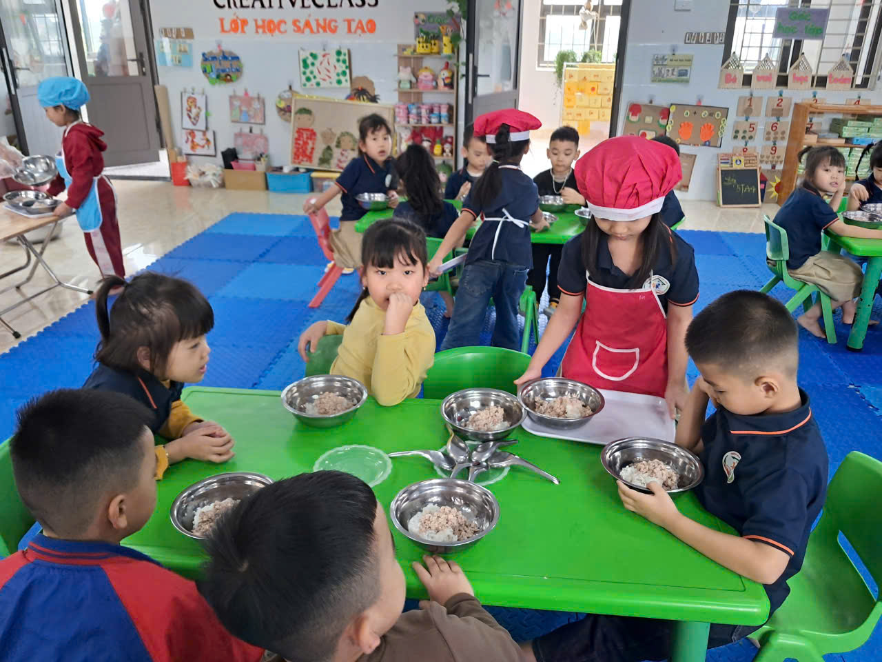 12/11/2025 A- A A+ | Đoàn giám sát công tác tổ chức bếp ăn bán trú năm học 2025 2026 Xem Chia s? 🌸 Trường Mầm non Hợp Thanh đón đoàn giám sát công tác tổ chức bếp ăn bán trú năm học 2025 – 2026 Thực hiện kế hoạch công tác năm học 2025 – 2026, sáng ngày 12 tháng 11 năm 2025, Trường Mầm non Hợp Thanh vinh dự được đón đoàn giám sát của Phòng Văn hóa xã hội, Xã Mỹ Đức về kiểm tra, đánh giá công tác tổ chức bếp ăn bán trú tại nhà trường. Đoàn giám sát gồm các đồng chí cán bộ chuyên môn phụ trách bậc học mầm non, cán bộ y tế – dinh dưỡng của Phòng GD&ĐT cùng đại diện chính quyền địa phương. Tiếp đoàn có Ban giám hiệu nhà trường, tổ nuôi dưỡng, giáo viên các khối lớp và nhân viên y tế học đường. Trong buổi làm việc, đoàn đã kiểm tra thực tế khu vực bếp ăn, quy trình chế biến – lưu mẫu thức ăn, nguồn cung ứng thực phẩm, công tác đảm bảo an toàn vệ sinh thực phẩm và hồ sơ sổ sách lưu trữ theo quy định. Bếp ăn của Trường Mầm non Hợp Thanh được tổ chức theo mô hình một chiều, đảm bảo sạch – gọn – an toàn ở tất cả các khâu: nhập thực phẩm, sơ chế, nấu nướng, chia khẩu phần và vận chuyển tới các lớp. Đoàn giám sát đánh giá cao sự quan tâm, chỉ đạo sát sao của Ban giám hiệu nhà trường, tinh thần trách nhiệm – chu đáo – khoa học của đội ngũ nhân viên nuôi dưỡng, cũng như ý thức giữ gìn vệ sinh, an toàn thực phẩm trong toàn trường. Các hồ sơ, quy trình, kế hoạch tổ chức bữa ăn bán trú được xây dựng đầy đủ, rõ ràng và cập nhật thường xuyên. Phát biểu tại buổi giám sát, đồng chí Trưởng đoàn ghi nhận những kết quả tích cực của nhà trường trong việc chăm lo bữa ăn, giấc ngủ, sức khỏe cho trẻ, đồng thời đề nghị nhà trường tiếp tục duy trì, phát huy tốt mô hình bếp ăn một chiều, thường xuyên bồi dưỡng nghiệp vụ cho nhân viên nuôi dưỡng, đa dạng thực đơn và chú trọng giáo dục dinh dưỡng cho trẻ trong các hoạt động hằng ngày. Buổi giám sát kết thúc trong không khí cởi mở, tích cực và trách nhiệm. Đây là dịp để Trường Mầm non Hợp Thanh nhìn nhận, đánh giá lại toàn diện công tác bán trú, từ đó nâng cao chất lượng chăm sóc, nuôi dưỡng – góp phần xây dựng môi trường học tập an toàn, thân thiện và hạnh phúc cho trẻ. Dưới đây là 1 số hình ảnh: Tập tin đính kèm Tải về