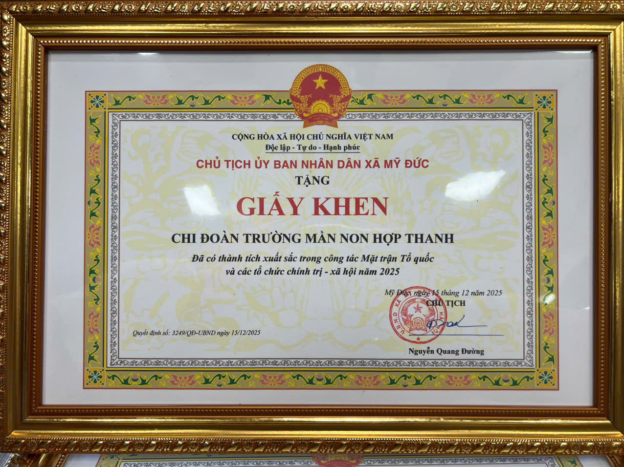 17/12/2025 A- A A+ | ĐOÀN THANH NIÊN TRƯỜNG MẦM NON HỢP THANH NHIỀU THÀNH TÍCH NỔI BẬT TRONG CÔNG TÁC ĐOÀN VÀ PHONG TRÀO THANH NIÊN NĂM 2025 Xem Chia s? ĐOÀN THANH NIÊN TRƯỜNG MẦM NON HỢP THANH NHIỀU THÀNH TÍCH NỔI BẬT TRONG CÔNG TÁC ĐOÀN VÀ PHONG TRÀO THANH NIÊN NĂM 2025 Trong những năm qua, Đoàn Thanh niên Trường Mầm non Hợp Thanh luôn phát huy vai trò xung kích, sáng tạo của tuổi trẻ, tích cực tham gia các phong trào thi đua, góp phần quan trọng vào việc thực hiện nhiệm vụ chính trị và xây dựng nhà trường ngày càng phát triển. Với tinh thần “Đâu cần thanh niên có, đâu khó có thanh niên”, đoàn viên thanh niên của nhà trường luôn gương mẫu trong công tác chuyên môn, tích cực đổi mới phương pháp chăm sóc – giáo dục trẻ, ứng dụng công nghệ thông tin trong giảng dạy, đồng thời tham gia hiệu quả các hoạt động do địa phương và các tổ chức chính trị – xã hội phát động. Bên cạnh đó, Đoàn Thanh niên nhà trường đã phối hợp chặt chẽ với Chi bộ, Ban Giám hiệu và các đoàn thể tổ chức nhiều hoạt động ý nghĩa như: Tham gia các phong trào tình nguyện, vệ sinh môi trường, xây dựng cảnh quan sư phạm xanh – sạch – đẹp. Tích cực tuyên truyền, vận động đoàn viên và phụ huynh thực hiện tốt các chủ trương của Đảng, chính sách pháp luật của Nhà nước. Tham gia hiệu quả các hoạt động của Mặt trận Tổ quốc và các tổ chức chính trị – xã hội tại địa phương. Ghi nhận những nỗ lực và đóng góp tích cực đó, năm 2025, Chi đoàn Trường Mầm non Hợp Thanh vinh dự được Chủ tịch Ủy ban Nhân dân xã Mỹ Đức tặng Giấy khen vì đã có thành tích xuất sắc trong công tác Mặt trận Tổ quốc và các tổ chức chính trị – xã hội. Đây là niềm tự hào, đồng thời là nguồn động viên to lớn để tập thể đoàn viên thanh niên nhà trường tiếp tục phấn đấu, rèn luyện và cống hiến nhiều hơn nữa trong thời gian tới. Trong thời gian tới, Đoàn Thanh niên Trường Mầm non Hợp Thanh sẽ tiếp tục phát huy truyền thống đoàn kết, tinh thần trách nhiệm và sức trẻ, góp phần xây dựng nhà trường ngày càng vững mạnh, xứng đáng là lực lượng nòng cốt trong các phong trào thi đua của địa phương. Tập tin đính kèm Tải về