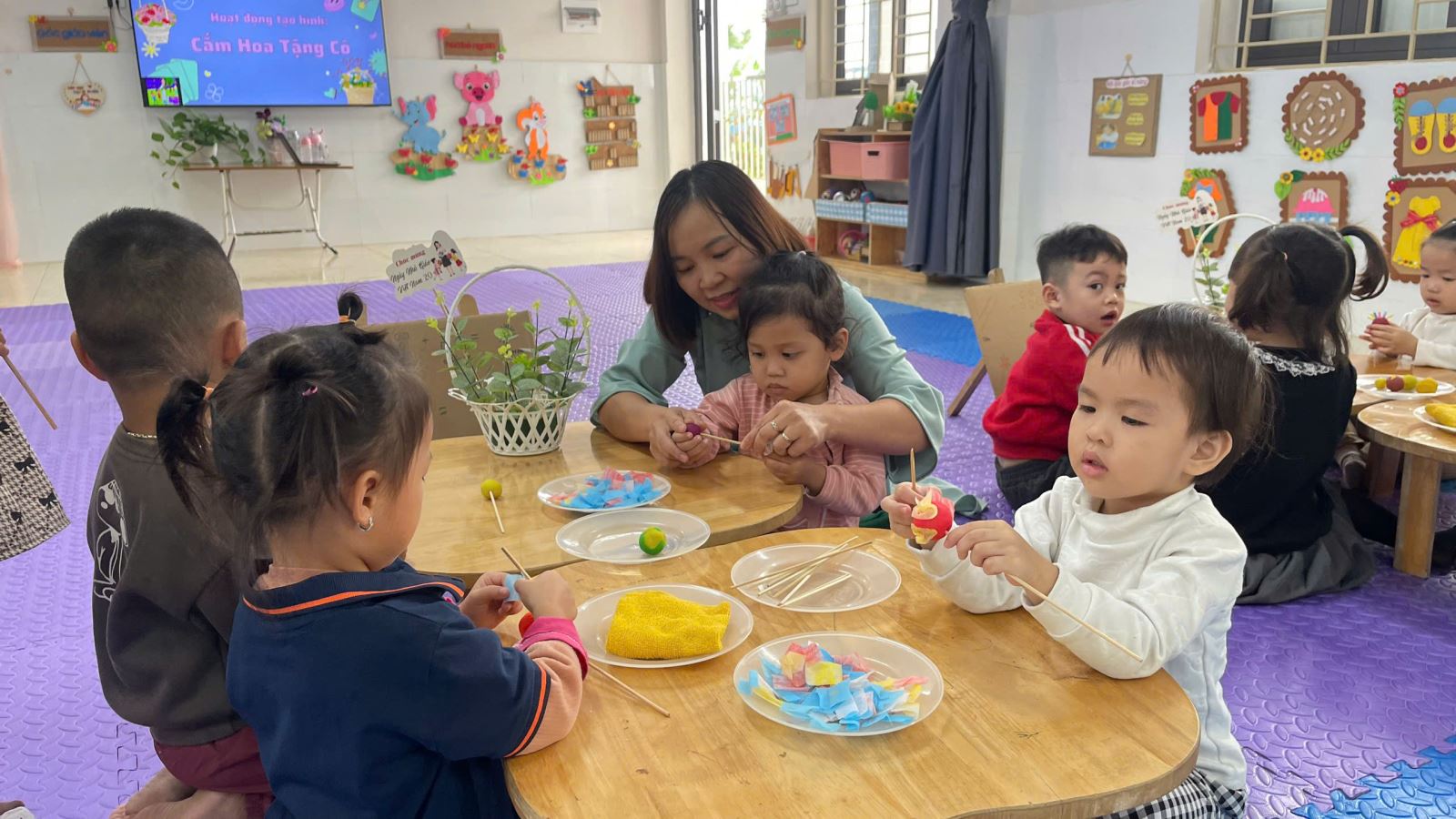 TRƯỜNG MẦM NON HỢP THANH TỔ CHỨC HOẠT ĐỘNG GÓI BÁNH CHƯNG CHO TRẺ