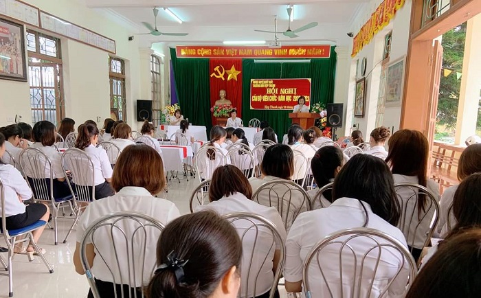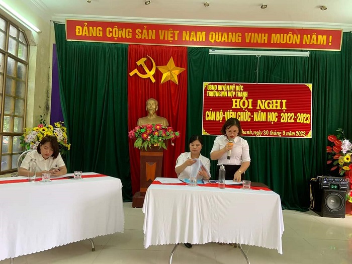 10/03/2023 A- A A+ | Hội nghị cán bộ, viên chức năm học 2022 - 2023 Xem Chia s? Hội nghị cán bộ, viên chức năm học 2022 - 2023 của trường mầm non Hợp Thanh đã thành công tốt đẹp. Tập thể cán bộ, viên chức và người lao động nhà trường quyết tâm phát huy những thành tích đã đạt được, phấn đấu thực hiện thắng lợi nhiệm vụ chính trị, tích cực đóng góp công sức và trí tuệ xây dựng Nhà trường ngày một vững mạnh./. Tập tin đính kèm Tải về