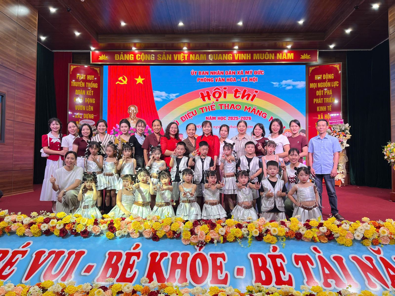 13/04/2026 A- A A+ | HỘI THI VŨ ĐIỆU THỂ THAO NĂM NON XÃ MỸ ĐỨC Xem Chia s? Thực hiện Kế hoạch tổ chức Hội thi “Vũ điệu thể thao măng non” cấp xã năm học 2025 – 2026 của UBND xã Mỹ Đức, ngày 10/04/2026 Trường Mầm non Hợp Thanh đã tích cực tham gia với tinh thần sôi nổi, hào hứng. Đây là hoạt động thiết thực nhằm đẩy mạnh giáo dục thể chất, phát triển vận động, kỹ năng xã hội và thẩm mỹ cho trẻ, đồng thời tạo sân chơi lành mạnh, bổ ích cho các con. Tham gia hội thi , các bé của nhà trường đã mang đến tiết mục đặc sắc với những động tác linh hoạt, sáng tạo, phù hợp với lứa tuổi.Các tiết mục được dàn dựng công phu, thể hiện sự nhịp nhàng, khỏe khoắn và giàu tính nghệ thuật, để lại nhiều ấn tượng tốt đẹp trong lòng Ban Giám khảo và khán giả. Đội thi của Trường Mầm non Hợp Thanh gồm các bé 5-6 tuổi, được tuyển chọn và luyện tập kỹ lưỡng. Với sự tự tin, đáng yêu và tinh thần đoàn kết, các con đã hoàn thành xuất sắc phần thi của mình, mang đến bầu không khí vui tươi, sôi động cho hội thi. Với sự nỗ lực đó, Trường Mầm non Hợp Thanh vinh dự đạt Giải Nhì và Giải Ấn tượng tại Hội thi “Vũ điệu thể thao măng non” cấp xã năm học 2025 – 2026. Đây là kết quả xứng đáng cho sự cố gắng của cô và trò nhà trường, đồng thời là nguồn động viên to lớn để tiếp tục nâng cao chất lượng giáo dục trong thời gian tới. Nhằm ghi nhận và động viên sự cố gắng, nỗ lực của các con, nhà trường đã có buổi liên hoan và trao tặng những chiếc ba lô xinh xắn như một món quà ý nghĩa. Những món quà nhỏ nhưng chứa đựng tình cảm yêu thương, sự khích lệ để các con tiếp tục tự tin, mạnh dạn tham gia các hoạt động trong học tập và cuộc sống. Nhà trường xin trân trọng cảm ơn các đồng chí lãnh đạo UBND xã Mỹ Đức đã quan tâm, chỉ đạo và tạo điều kiện để tổ chức một sân chơi bổ ích, ý nghĩa cho trẻ mầm non. Xin cảm ơn Ban Giám hiệu nhà trường đã sát sao chỉ đạo, tạo mọi điều kiện thuận lợi để đội thi tham gia đạt kết quả tốt. Xin chân thành cảm ơn quý phụ huynh đã luôn đồng hành, phối hợp chặt chẽ trong việc chuẩn bị trang phục, đạo cụ và động viên tinh thần cho các con. Đặc biệt, xin gửi lời cảm ơn sâu sắc tới các cô giáo đã tận tình hướng dẫn, luyện tập, chăm sóc để các con tự tin tỏa sáng trên sân khấu. Và trên hết, xin biểu dương các con đã cố gắng hết mình, mang đến những tiết mục đặc sắc, góp phần làm nên thành công của hội thi. Tập tin đính kèm Tải về