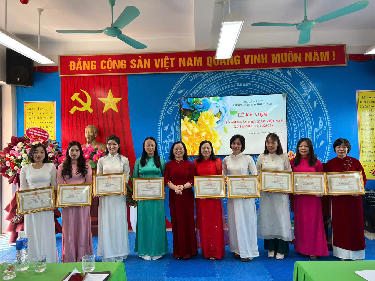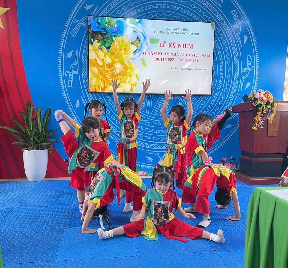 21/11/2025 A- A A+ | TRƯỜNG MẦM NON HỢP THANH LONG TRỌNG TỔ CHỨC LỄ KỶ NIỆM NGÀY NHÀ GIÁO VIỆT NAM Xem Chia s? TRƯỜNG MẦM NON HỢP THANH LONG TRỌNG TỔ CHỨC LỄ KỶ NIỆM NGÀY NHÀ GIÁO VIỆT NAM 20/11/2025, TRI ÂN CÁC THẾ HỆ NHÀ GIÁO VÀ TUYÊN DƯƠNG CÁ NHÂN XUẤT SẮC Hòa chung không khí cả nước hướng về Ngày Nhà giáo Việt Nam, sáng ngày 20/11/2025, Trường Mầm non Hợp Thanh đã long trọng tổ chức Lễ kỷ niệm Ngày Nhà giáo Việt Nam 20/11 nhằm tri ân những đóng góp to lớn của các thế hệ thầy cô giáo – những người đã và đang miệt mài gieo trồng tri thức. Buổi lễ vinh dự được đón tiếp các cô nguyên Hiệu trưởng, nguyên Hiệu phó và các giáo viên đã nghỉ hưu, những người đã cống hiến công sức, trí tuệ trong việc xây dựng nền móng vững chắc cho nhà trường qua nhiều thời kỳ. Sự hiện diện đầy ấm áp của các cô đã mang đến cho buổi lễ không khí trang trọng nhưng cũng đậm tình nghĩa thầy trò. Đồng hành cùng nhà trường trong ngày lễ còn có Ban đại diện cha mẹ học sinh, những người luôn quan tâm, ủng hộ và phối hợp chặt chẽ với nhà trường trong công tác chăm sóc – nuôi dưỡng – giáo dục trẻ. Mở đầu chương trình là các tiết mục văn nghệ sôi nổi, đầy cảm xúc do cô và trò nhà trường biểu diễn, như những bó hoa tươi thắm gửi đến các thầy cô nhân ngày đặc biệt. Tiếp đó, cô Hiệu trưởng đã ôn lại truyền thống tốt đẹp của nghề giáo và quá trình phát triển của Trường Mầm non Hợp Thanh; đồng thời gửi lời tri ân sâu sắc tới các thế hệ cán bộ – giáo viên – nhân viên đã đóng góp vào sự trưởng thành của nhà trường. Các cô nguyên cán bộ quản lý và giáo viên đã nghỉ hưu cũng chia sẻ nhiều câu chuyện đầy xúc động về những năm tháng gắn bó dưới mái trường Hợp Thanh, gửi gắm niềm tin và kỳ vọng vào đội ngũ giáo viên trẻ – những người đang tiếp tục kế thừa và phát huy truyền thống quý báu. Trong khuôn khổ buổi lễ, nhà trường đã tổ chức khen thưởng những cá nhân có thành tích xuất sắc trong năm học 2024–2025. Đây là sự ghi nhận đầy ý nghĩa cho những nỗ lực đổi mới, tinh thần trách nhiệm và lòng yêu nghề của các thầy cô. Những phần thưởng ấy không chỉ tôn vinh từng cá nhân mà còn góp phần tạo động lực để toàn thể đội ngũ tiếp tục phấn đấu, nâng cao chất lượng giáo dục. Đại diện cha mẹ học sinh cũng gửi lời cảm ơn chân thành đến tập thể sư phạm nhà trường vì những cống hiến thầm lặng trong việc mang đến môi trường học tập an toàn, thân thiện và hạnh phúc cho trẻ. Buổi lễ kết thúc trong không khí trang trọng, ấm áp và đầy cảm xúc, để lại nhiều ấn tượng đẹp trong lòng mỗi người tham dự. Lễ kỷ niệm 20/11 năm nay không chỉ là dịp tri ân mà còn là cột mốc nhắc nhở mỗi thầy cô giáo tiếp tục giữ vững ngọn lửa đam mê, tận tâm với sự nghiệp “trồng người”. Xin kính chúc các thầy cô luôn mạnh khỏe, hạnh phúc và thành công trên hành trình giáo dục đầy ý nghĩa. Tập tin đính kèm Tải về