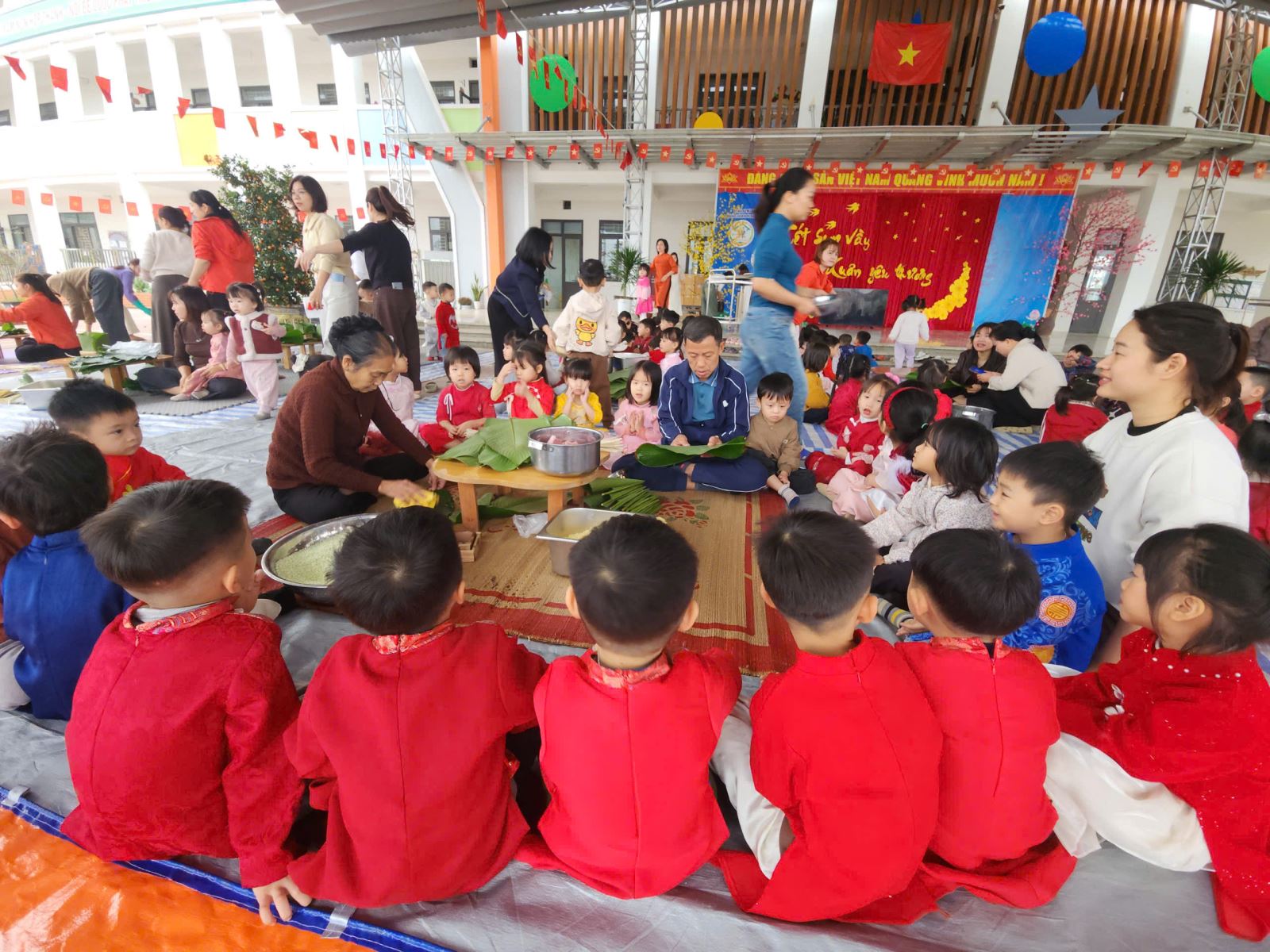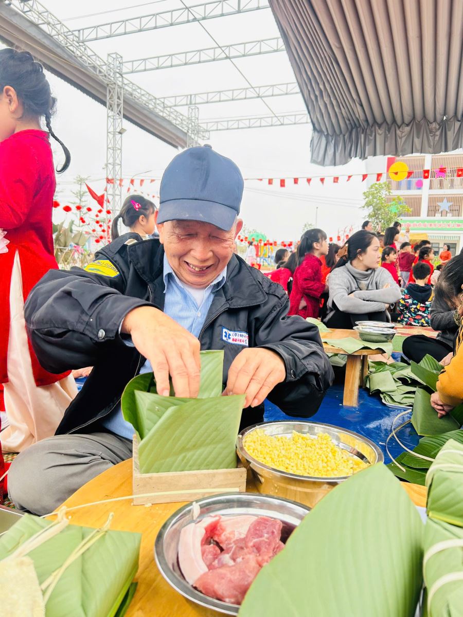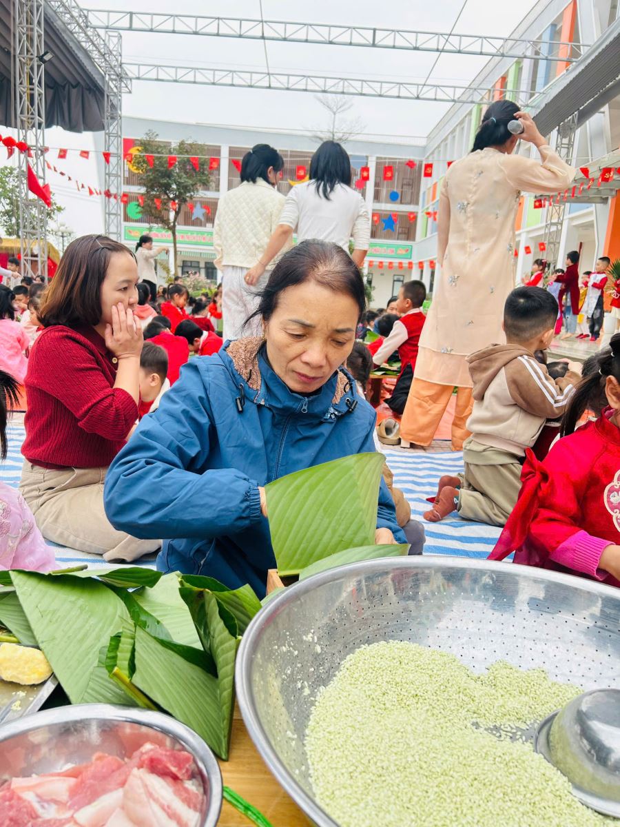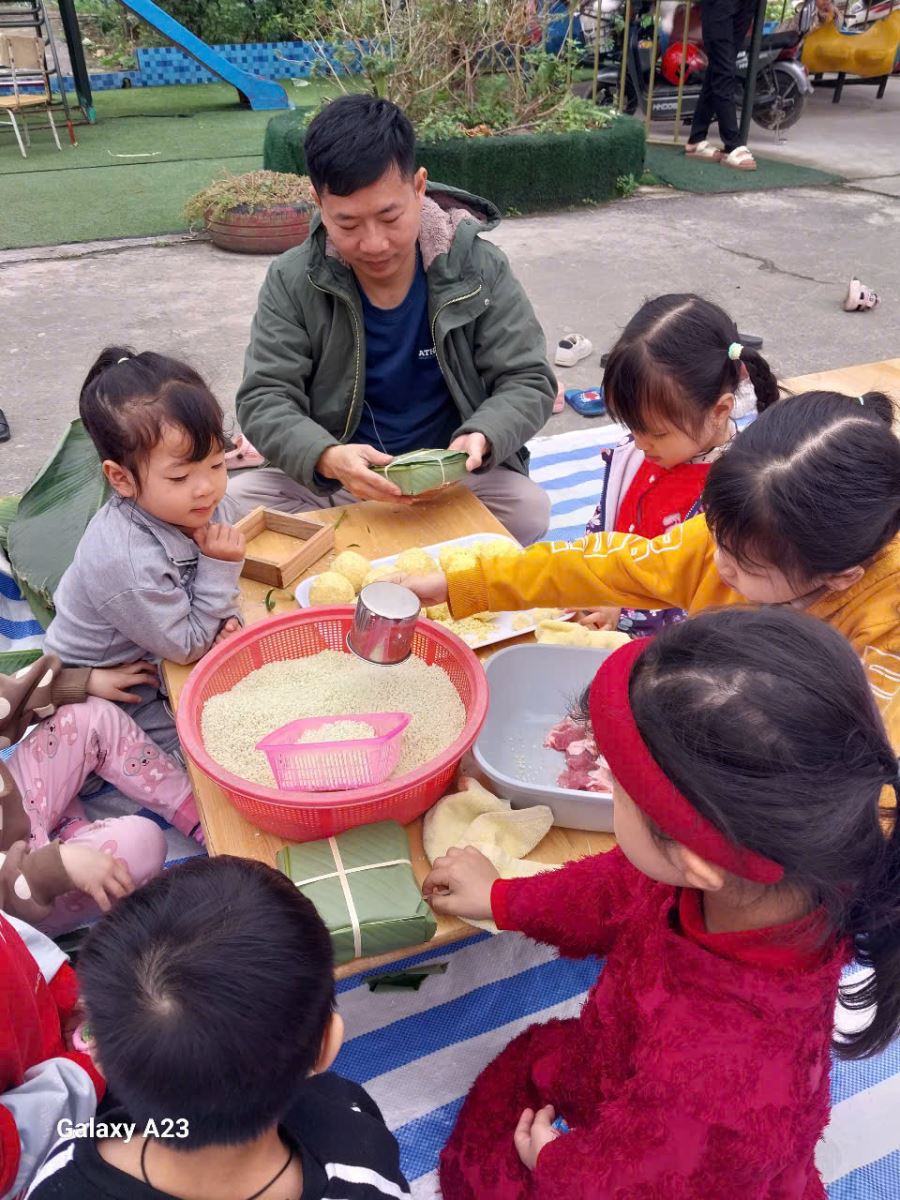 13/02/2026 A- A A+ | TRƯỜNG MẦM NON HỢP THANH TỔ CHỨC HOẠT ĐỘNG GÓI BÁNH CHƯNG CHO TRẺ Xem Chia s? TRƯỜNG MẦM NON HỢP THANH TỔ CHỨC HOẠT ĐỘNG GÓI BÁNH CHƯNG CHO TRẺ (Ngày 11/02/2026) Trong không khí rộn ràng của những ngày đầu xuân, sáng ngày 11/02/2026, Trường Mầm non Hợp Thanh đã tổ chức hoạt động trải nghiệm “Gói bánh chưng ngày Tết” cho các bé. Đây là một hoạt động ý nghĩa nhằm giúp trẻ hiểu thêm về nét đẹp truyền thống của dân tộc Việt Nam mỗi dịp Tết đến, xuân về. Ngay từ sáng sớm, sân trường đã ngập tràn sắc xanh của lá dong, màu trắng của gạo nếp, màu vàng của đỗ xanh và màu hồng tươi của thịt lợn. Dưới sự hướng dẫn tận tình của các cô giáo và sự hỗ trợ của phụ huynh, các bé được quan sát quy trình gói bánh chưng, hiểu được các bước để làm ra chiếc bánh. Các con vô cùng hào hứng khi được tự tay lau lá dong, đong gạo, cho đỗ, xếp thịt và cùng cô gói nên những chiếc bánh vuông vắn. Những bàn tay nhỏ xinh tuy còn vụng về nhưng ánh mắt lại ánh lên niềm vui và sự thích thú. Tiếng cười nói rộn ràng khắp sân trường tạo nên một không khí ấm áp, sum vầy như chính không khí Tết cổ truyền. Hoạt động không chỉ giúp trẻ rèn luyện sự khéo léo, tính kiên trì mà còn giáo dục các con biết trân trọng những giá trị truyền thống, yêu quê hương đất nước và hiểu được ý nghĩa của sự đoàn viên trong gia đình. Đây cũng là dịp để nhà trường tăng cường sự gắn kết giữa gia đình và nhà trường thông qua các hoạt động trải nghiệm thực tế. Buổi trải nghiệm gói bánh chưng khép lại trong niềm vui hân hoan của cô và trò Trường Mầm non Hợp Thanh. Những chiếc bánh chưng xanh không chỉ là thành quả lao động mà còn là minh chứng cho một ngày học tập đầy ý nghĩa, góp phần nuôi dưỡng trong tâm hồn trẻ thơ tình yêu văn hóa dân tộc ngay từ những năm tháng đầu đời. Tập tin đính kèm Tải về